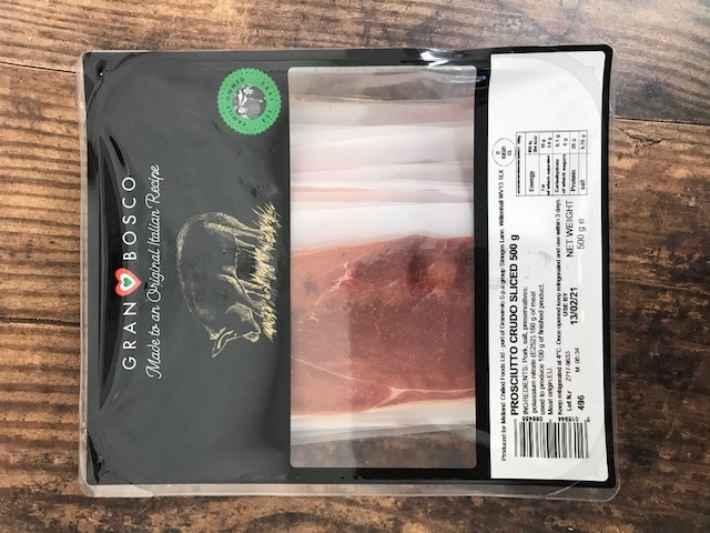 A strongly flavoured Italian cured ham, eaten uncooked and thinly sliced.