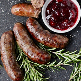 Our most popular Venison & Cranberry sausages are juicy, nutritious, and addictive. A hint of cranberry guarantees a distinctive character and depth of flavour.